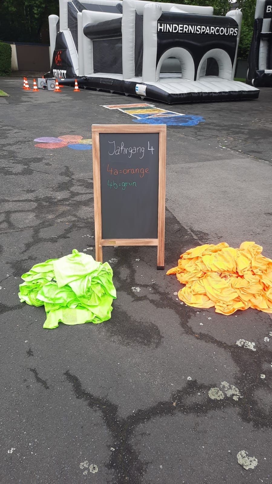 Der gesamte Schulhof und der Bolzplatz hinter der Arnoldschule verwandelten sich am Morgen in eine Sport- und Bewegungslandschaft aus aufblasbaren Stationen. Es gab verschiedene Stationen mit bekannten, aber modernisierten Sportspielen. Besonderer Beliebtheit erfreute sich der Parcours, aber auch die Schießbude (ein aufblasbarer Menschenkicker) hat den Kindern viel Spaß bereitet.